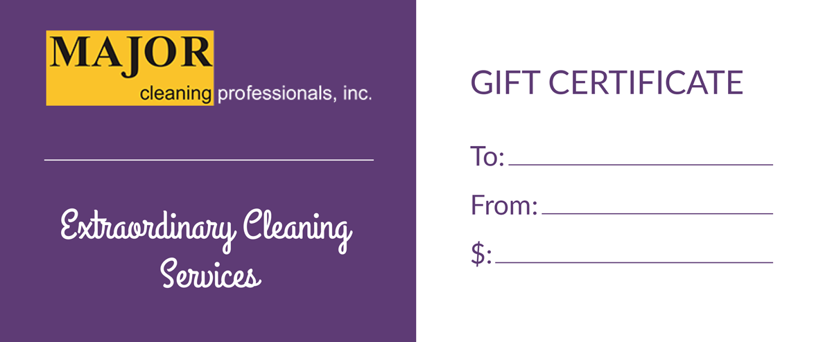 - (Please note: Major Cleaning Professionals, Inc gift certificates are redeemable only at Chicago land area – no refunds are available, every purchase is final).
